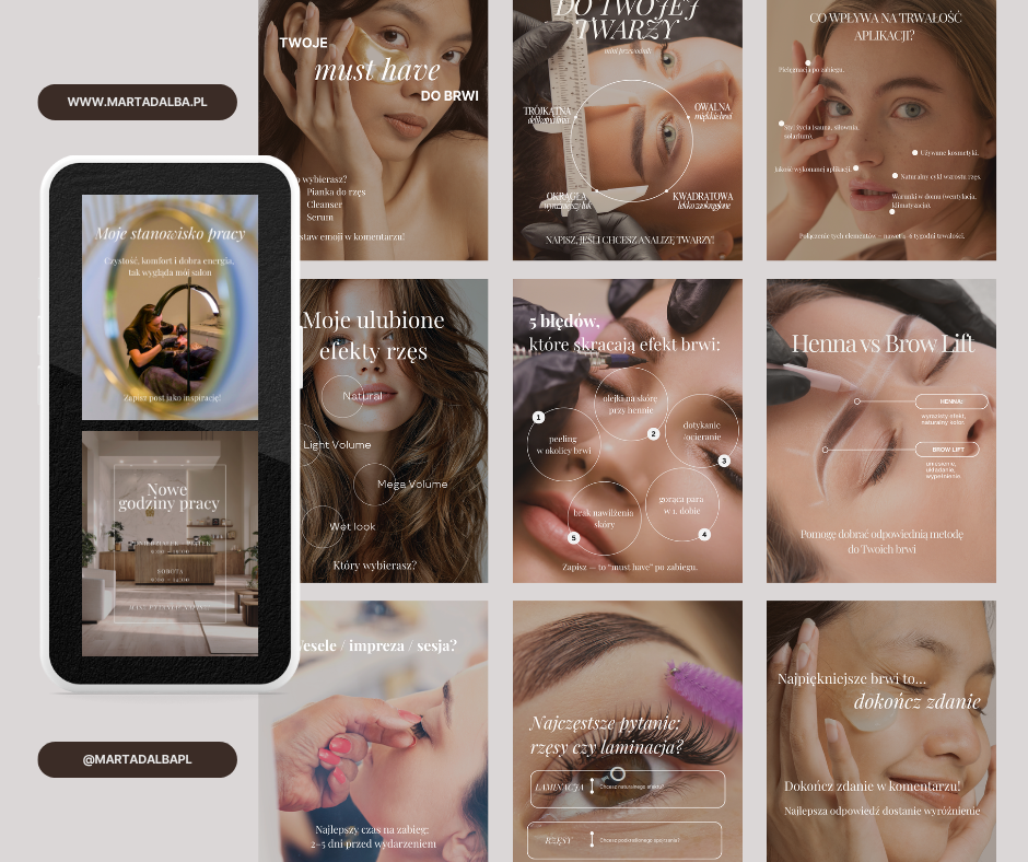 100 gotowych szablonów na Instagram dla stylistek brwi i rzęs