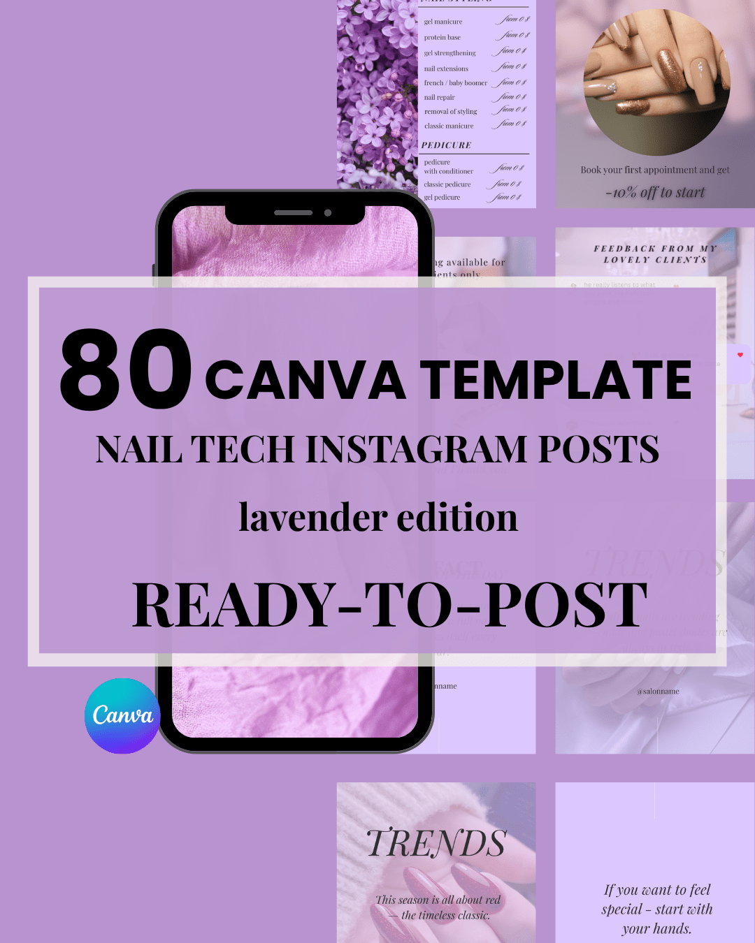 Lavender Canva Templates for Nail Techs | 80 Instagram Post Templates – ENGLISH