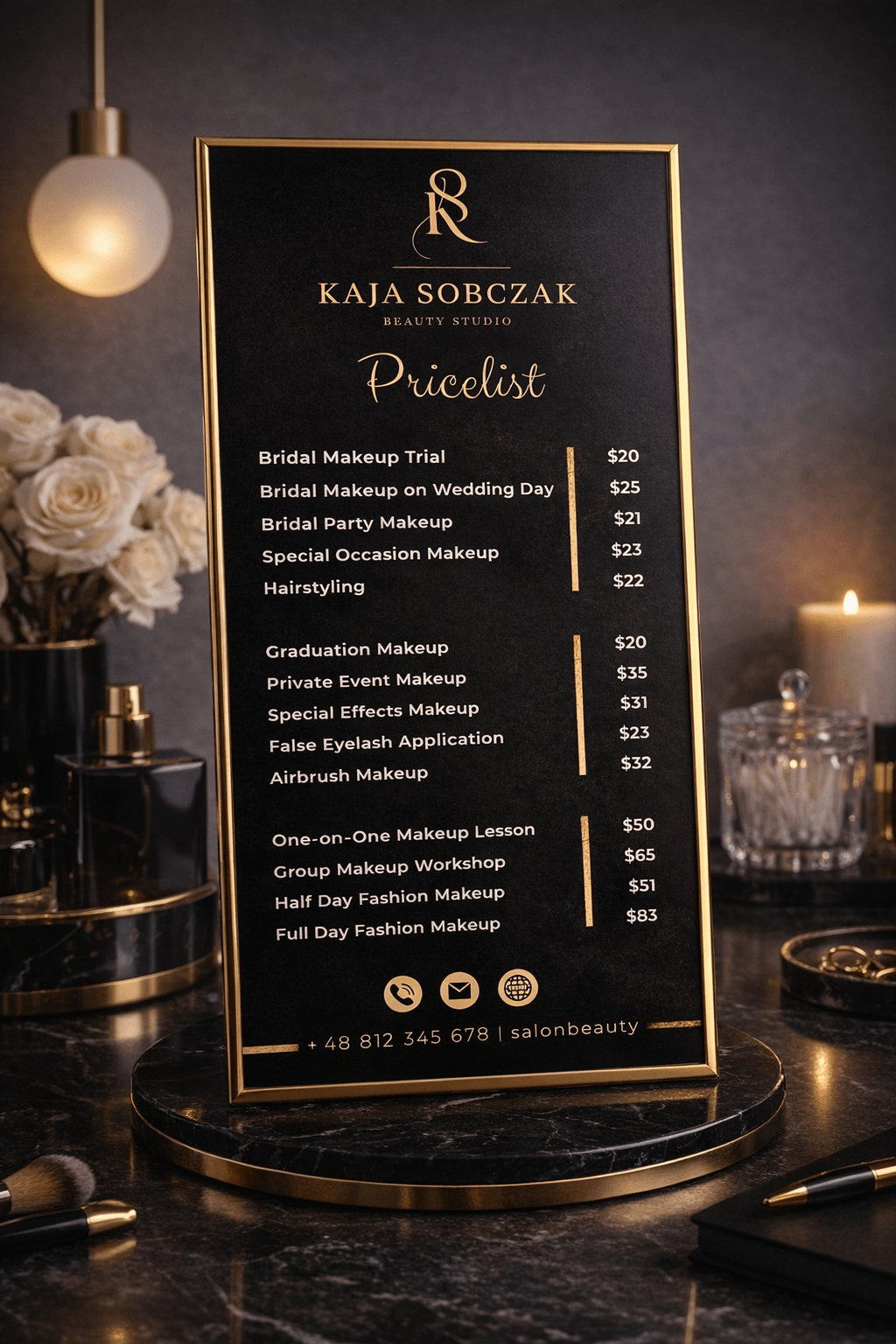 Create a bold, elegant and high-end price list that elevates your beauty brand 🖤